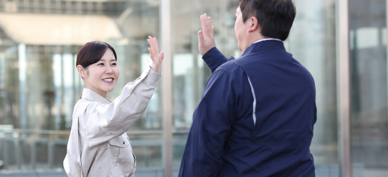 私たちが長年取り組んできた仕事の柱は、内外装工事全般に渡る「リニューアル事業」、養生やクリーニングといった「サポート事業」、検査・点検・技術者派遣を行う「AIS事業」の3つ。現在は、3カ年ごとの戦略的な中長期計画のもとリニューアル事業の拡大に注力しており、今後は、第4の柱とするべく個人のお客さまをターゲットとした事業なども展開していく予定です。 また、若い皆さんにとって働きやすい社内環境であることも、ヤエスR&Sの大きな特徴といっていいでしょう。そのベースは、組織の垣根を越えた風通しの良さにあります。部署内の先輩や他部署の人とも自由に意見を交わせる企業風土は、建築業界にあって特筆すべき魅力といっていいかもしれません。さらに、仕事への意欲とプライベートライフの両方を充実させることにつながる、最小限の残業時間や長期休暇の取りやすさも見逃せないポイントです。あなたが生き生き輝くワークステージとはつらつとしたライフスタイルを、明るい仲間と一緒にスタートしてはいかがでしょう。