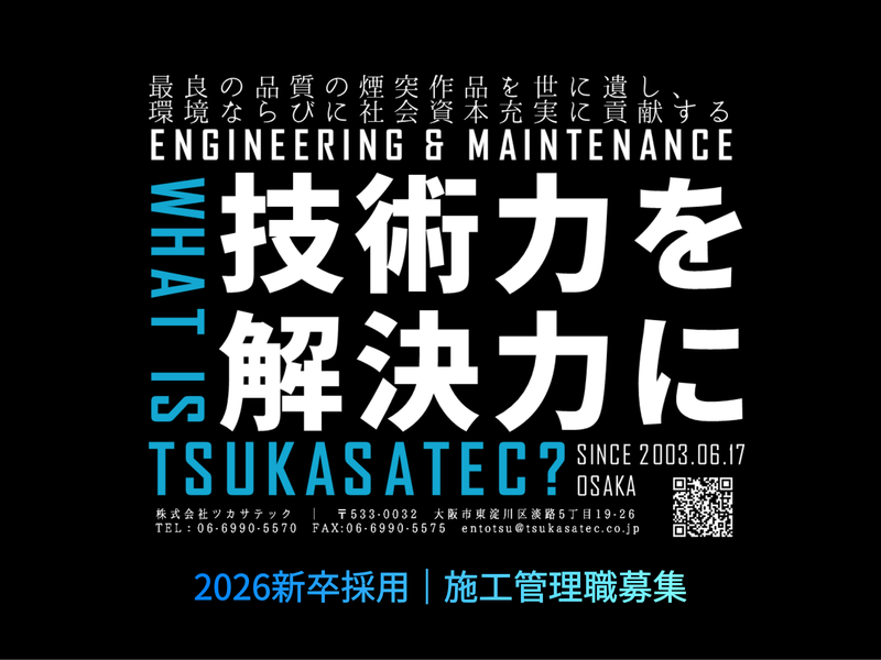 【日本の生産インフラを支えるシゴト】高層煙突専門エンジニアリング企業/施工管理職募集