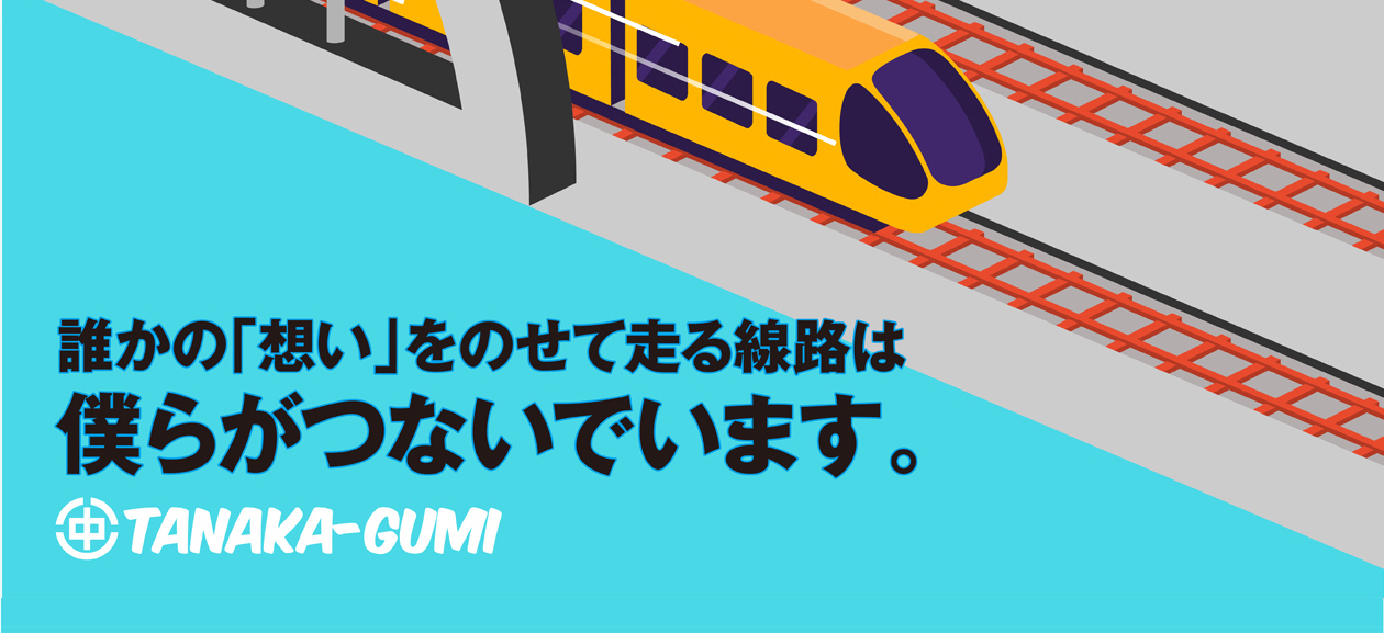 毎日普通に動き、人々を学校や会社に運ぶ“電車”も、 自転車や自動車が行き交う“道路”も、 「土木」の技術が無いと支えられません。 私たち田中組は普段は見えない、『当たり前』の風景を創り、支える仕事をしています。遠い未来はわかりませんが、この『当たり前』はスグ無くなったりしません。電車が時間どおりにホームに入ってくるのが『当たり前』なら、そのための仕事もずっと必要とされるものなのです。 もちろん技術を磨き続けないといけませんが、代わりに私たちの生活や収入を安定させる事ができます。そして、無くならない仕事の中でじっくり成長し、定年退職の日まで活躍し続けられる“未来”を手に入れる事もできます。 楽な仕事ではありませんが、一緒に笑い会える仲間や先輩たちと出会って、これからの長い社会人としての人生を楽しく過ごせる環境を用意しています。 ◆土木・建築の二本柱を持つ小さな総合建設企業です。 一般的な土木工事に加え、限られた企業だけが参入できる軌道(鉄道線路)分野での評価を獲得しているだけではなく、公共・民間をあわせて建築分野でも田中組は実績を持っており、社員は両方の分野で活躍しています。