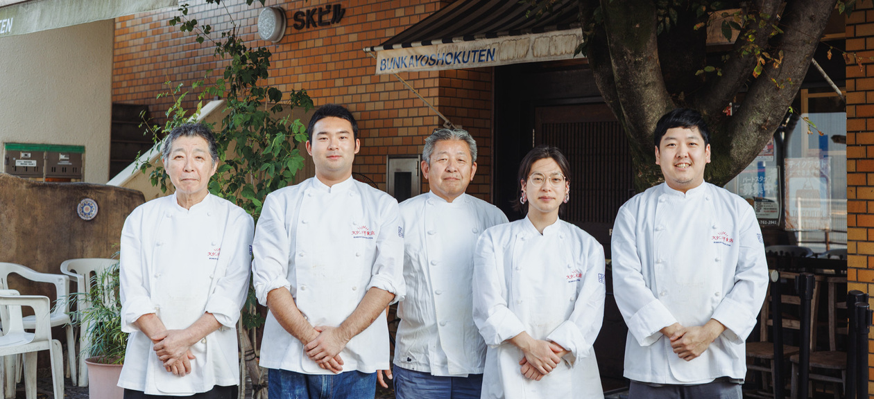 私が「文化洋食店」を開業したのは27歳の時です。実家が飲食店を営んでいたものの、十代の頃は料理に特別な思い入れがあったわけではなく、初めは「調理=親しみのある職業」という感覚でこの道に入りました。最初に就職したレストランで二年ほど経験を積んだあとは、以前から興味があったデザインの学校へ進学。再び料理の道に戻ってからはデザインの学びが料理に活き、「文化洋食店」の味を形づくるうえで大きな糧となりました。 自分の店を構えるにあたり、店の名前は漢字で「文化洋食店」としました。当時「ヌーベル・キュイジーヌ」が流行し、街にはフランス語を店名に冠する店が溢れていましたが、あえて漢字にすることで注目が集まり、全国からお客様が来店されるようになりました。ほどなく「名古屋を代表する洋食店」と言っていただけるようになったのは、とても幸運なことだったと感謝しています。 人と同じではなく自分なりの工夫を凝らしていくと、日々の仕事に楽しみが生まれ、その喜びは何より大きな成長の糧になります。私たちと一緒にいろんな料理の可能性を探求しませんか。「文化洋食店」が、あなたの料理人としての起点になれたら嬉しく思います。