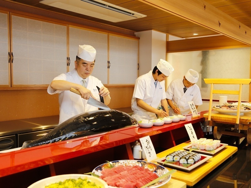 厨房調理とライブキッチンでのパーフォーマンススタッフ
