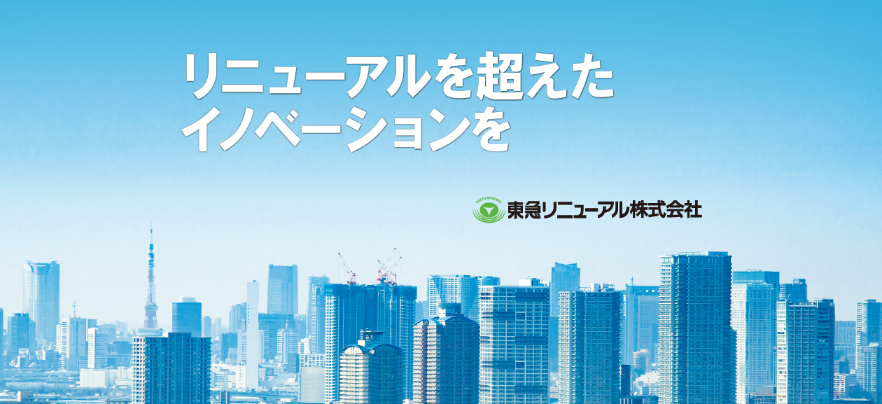 弊社は、1987年の創業以来、東急建設グループの一員として、主に建物のリニューアル工事を30年以上にわたり担って参りました。近年、地球規模で環境負荷の低減が叫ばれる中、建設業界はスクラップ & ビルドからストック & リノベーションへと変遷してきています。 私たち東急リニューアルは、 様々な場所で生き続けている建物に、新たな命を吹き込み“建物を次世代へ”という強い思いで、 日々、リニューアルを超えたイノベーションを追求しております。そしてこれからも、サステナブルな社会の実現に向け 「3つの提供価値(脱炭素、廃棄物ゼロ、防災・減災) を通じ、「社会に貢献する会社」であり続けたいと考えております。