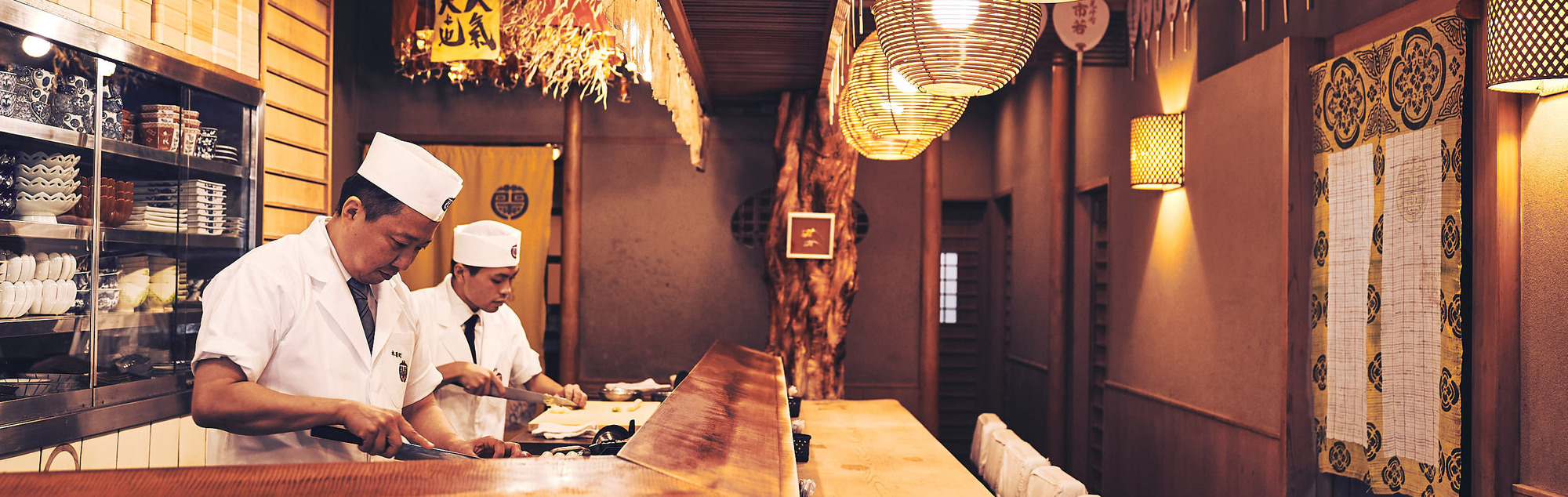 調理に携わる人間がお客様の前に出て、その表情・反応を見ながら調理を行えるという点が、割烹の醍醐味です。よく比較対象になる料亭は、厨房から個室へと仲居さんがお料理を運ぶため、調理師とお客様が直接顔を合わせ
