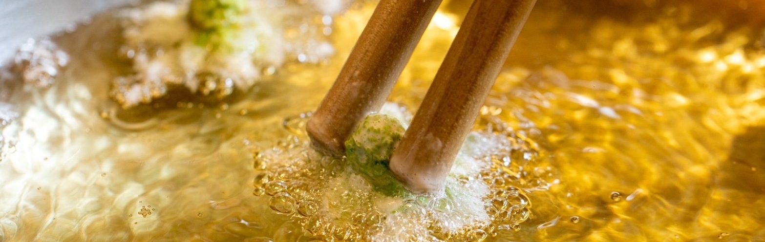 お客様の目の前で天ぷらを揚げるのは、調理とパフォーマンス両方に意識が必要であり、充分な機転を働かせないといけません。ですから、当店では大将や店長が揚げを担当します。